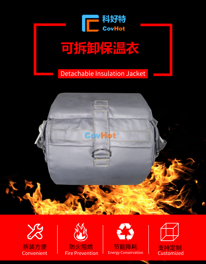 防腐蝕可拆卸法蘭閥門保溫套,保溫絕熱性能優良,能耐高低溫,尤其適用于不同工業設備、閥門、管道等的保溫隔熱需求。